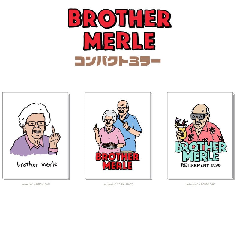【BROTHER MERLE コンパクトミラー】 ユニークでキュートなイラストがデザインされたブラザーマールのコンパクトミラーです。 持ち運びにもとっても便利な片手で持てるサイズの手鏡となっております。 ほかにもいろんなグッズあるので、お気に入りを揃えてみませんか。 ちょっとしたプレゼントにもおすすめです。 BROTHER MERLE / ブラザーマール カナダのスケートボーダーでイラストレーターでも有る GAB LALANDE がデザイナー。 Brother Merle はアートワークとブランドで使用する GAB のニックネーム イラストレーターのキャリアをフォーカスする為に 2014 年に Brother Merle をスタートさせました。 Brother Merle Artwork の名の下にユニークなスタイルで 世界のユーモアのあるイラストやアートワークを展開しています。 ■サイズ:(W)90x(L)115mm パッケージサイズ: (W)100x(H)150mm ■備考:お使いのディスプレイの設定によっては、 画面上の色と実物の色が