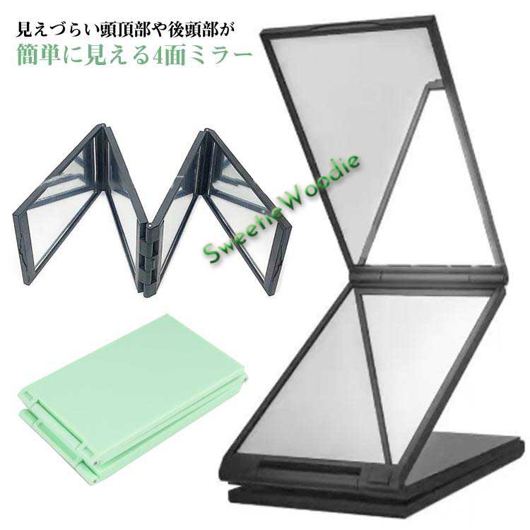 ■四面鏡 4面どこでもミラー ブラック 4面鏡 頭頂部 毛染め 白髪染め コンパクトミラー 手鏡 折り畳み