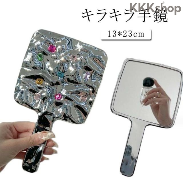 シルバー コンパクト ミニ きらきら 装飾 手鏡 大人 ラインストーン 高級 ハンドミラー おしゃれ 大きいサイズ コンパクトミラー 角形 お姫様ミラー 姫系