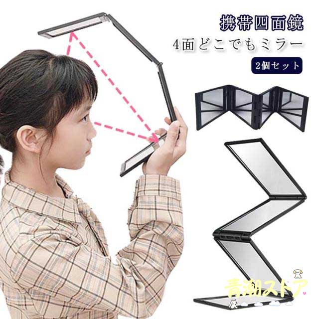 ■ハンディミラー 4面鏡 ウィッグ 折りたたみ 頭頂部 白髪 コンパクト 薄毛 毛染め スタンドミラー 手鏡 コンパクトミラー チェック ハンド