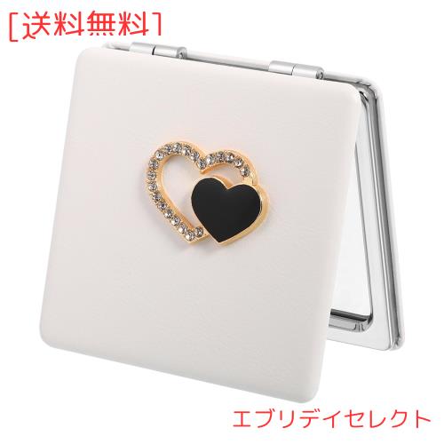 ■BESTOYARD 手鏡 双面 化粧鏡 両面鏡 2倍拡大鏡 金属 PU 北欧風 女優ミラー 折りたたみ可能 鏡 方形 コンパクト ハート ラインストーン 彼