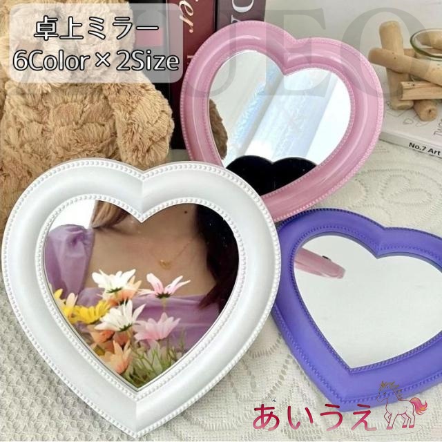 卓上ミラー スタンドミラー テーブルミラー 卓上鏡 化粧鏡 コンパクトミラー 手鏡 鏡 ハート型 インテリア 卓上 メイク 化粧