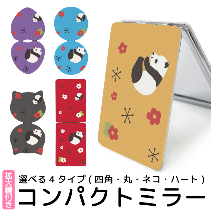 ■コンパクトミラー 折りたたみ 鏡 コンパクト ミラー 拡大鏡 付 携帯ミラー デザイン プリント ハンドミラー 二つ折り 手鏡 丸型ミラー 花