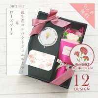 ■手鏡 折りたたみ コンパクト 名入れ プレゼント 母親 60代 退職祝い 拡大鏡 コンパクトミラー 誕生花& ブーケ セット 翌々営業日出荷