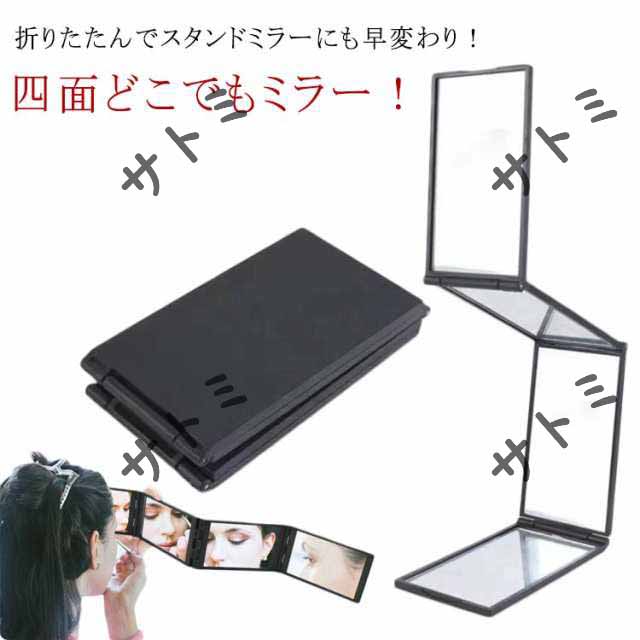 ■鏡 どこでもミラー 4面どこでもミラー 四面鏡 ミラー 折りたたみ鏡 コンパクト スタンドミラー 手鏡 4面鏡 化粧 折りたたみミラー メイク