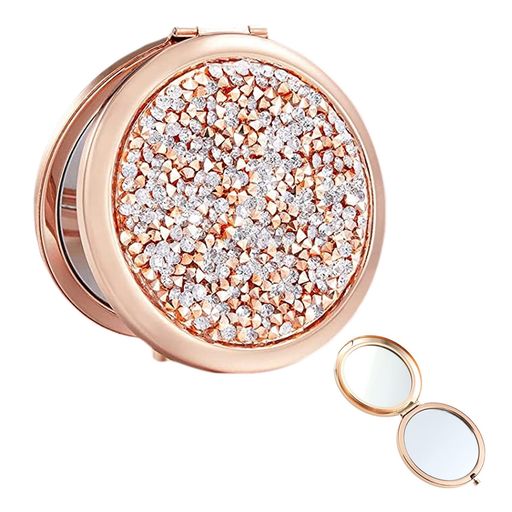 ■DEVENTORZ コンパクトミラー 両面鏡 手鏡 2倍 拡大鏡 携帯 メイクミラー 折りたたみ鏡 化粧鏡 女性 超軽量 おしゃれ (ローズゴールド1)