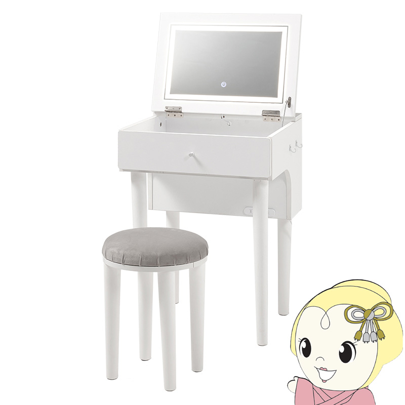 ■ドレッサー メイクデスク 化粧台 鏡台 おしゃれ かわいい ナチュラルモダン コスメボックス 女優ライト LED照明 スツール付き ホワイト