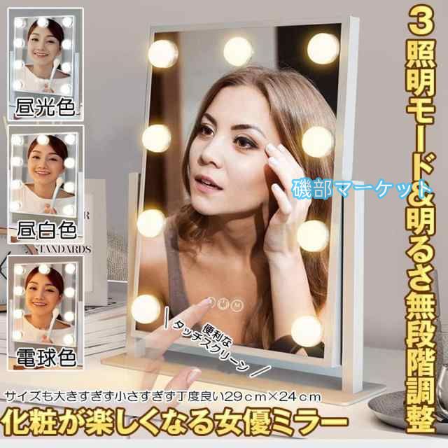 女優ミラー 卓上 ドレッサー 化粧鏡 ハリウッドミラー ライト メイクミラー ミラー 大きめ ライト付き 卓上ミラー 鏡 LED 3色照明モード 無段階明るさ調節可能