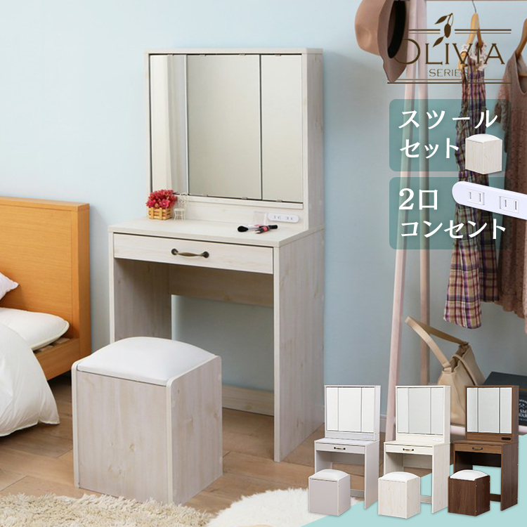 コンパクトなサイズにたっぷりの収納力を備えたシンプルデザインに、便利な三面鏡付きのドレッサーです。★お客様組立★※当商品はお取り寄せ品の為、在庫の確認及び商品のお届けまでお時間を頂く場合がございます。また、商品がメーカーにて完売となっていた場合、キャンセル又は注文内容の変更をお願いいたしております。予めご了承くださいますようお願いいたします。