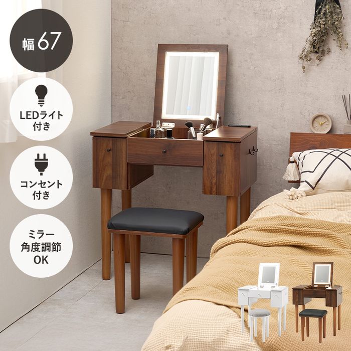 ■ドレッサー デスク 三面鏡 ブラウン ホワイト ピュアホワイト デスク 三面鏡 鏡台 化粧台 メイク台 3面鏡 収納 おしゃれ コンパクト ミラ