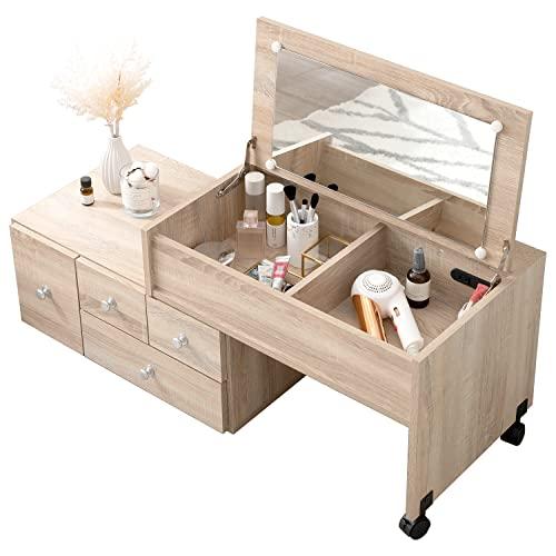 ■ドレッサー デスク 2WAY 幅46cm ロータイプ ハイタイプ ラック ( 鏡付き 鏡台 メイク台 兼用 机 棚 シェルフ オープンラック 収納 本棚