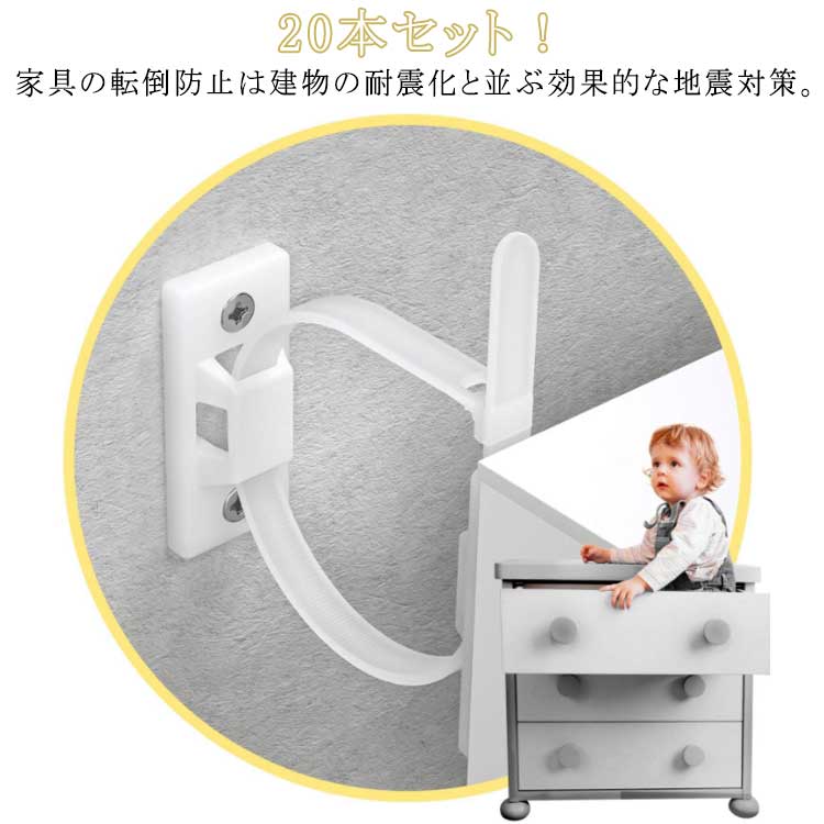 ■地震対策 20本セット!家具 ドレッサー 防炎対策 本棚 落下防止ベルト 耐震ストッパー 防災グッズ 耐震グッズ ストラップ 家具アンカー