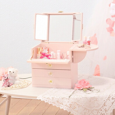 ■ドレッサー メイクボックス 鏡付き バニティ 大容量 コスメボックス化粧台 バニティケース コスメ ギフト 軽量 ロータイプ 低い 薄型 コ