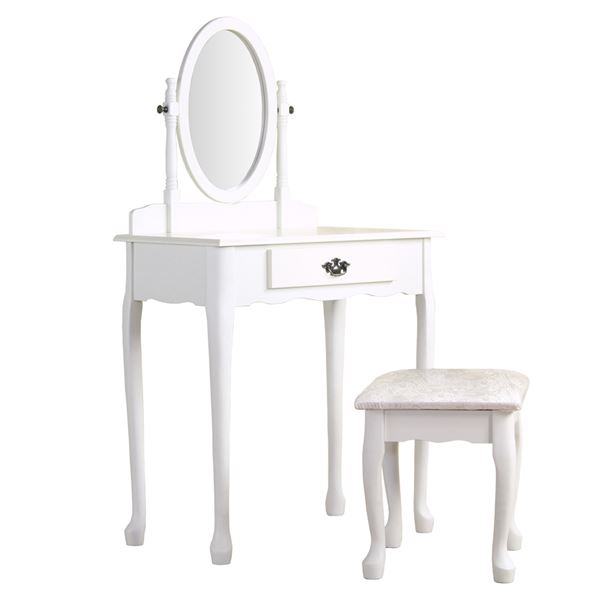 ●大型商品のため、複数購入時は追加送料がかかる場合がございます。 【サイズ】 ドレッサー:幅71.5×奥行43.5×高さ128.5cm(天板高75cm) スツール:幅48.5×奥行36.5×高さ42cm 【材質】 天板:MDF、塗装 脚部:天然木、塗装 スツール座面:ポリエステル・ウレタン 【仕様】 色:アイボリー 引き出し付き ミラー角度調節可 【特記事項】 お客様組立品(組立の目安:約30分) 【ご注意事項】 本商品は、北海道・沖縄・離島への配送はいたしかねます。あらかじめご了承ください。 ▲メーカー直送品▲代金引換不可▲ラッピング不可▲北海道沖縄離島配送不可
