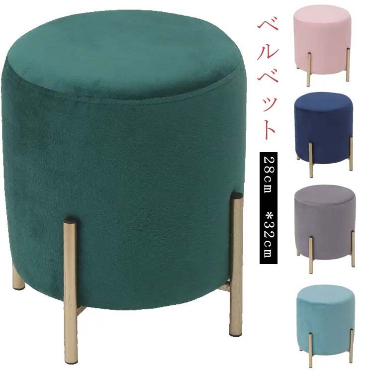 ■スツール おしゃれ 丸型 ベルベット ベロア くすみカラー 円形 ゴールド 小さめ 脚付き アンティーク リビング ドレッサー 玄関 椅子 イ