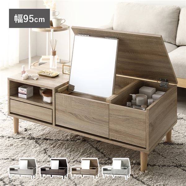■ドレッサー テーブル センターテーブル 約幅95cm ナチュラル オープン収納 トレイ収納 センター収納 ボトル収納 組立品 【北海道・沖縄・