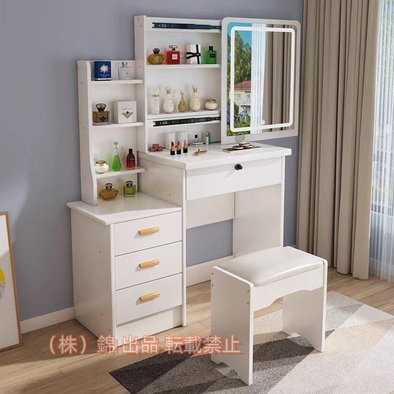 ■ドレッサー&チェアセットドレッサーおしゃれシンプルLEDミラーライト付き化粧台鏡台プランドレッサー収納たっぷり錦椅子スツール付きメ