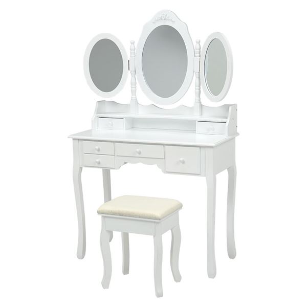 楕円形の三面鏡と脚の曲線が上品なドレッサーセット。スツール付き
