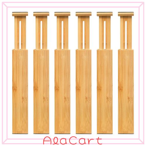 ◆商品名:Vae Fae 調節可能な竹製引き出しディバイダー 拡張可能な引き出しオーガナイザー キッチン 寝室 バスルーム ドレッサー オフィス用 6個パ