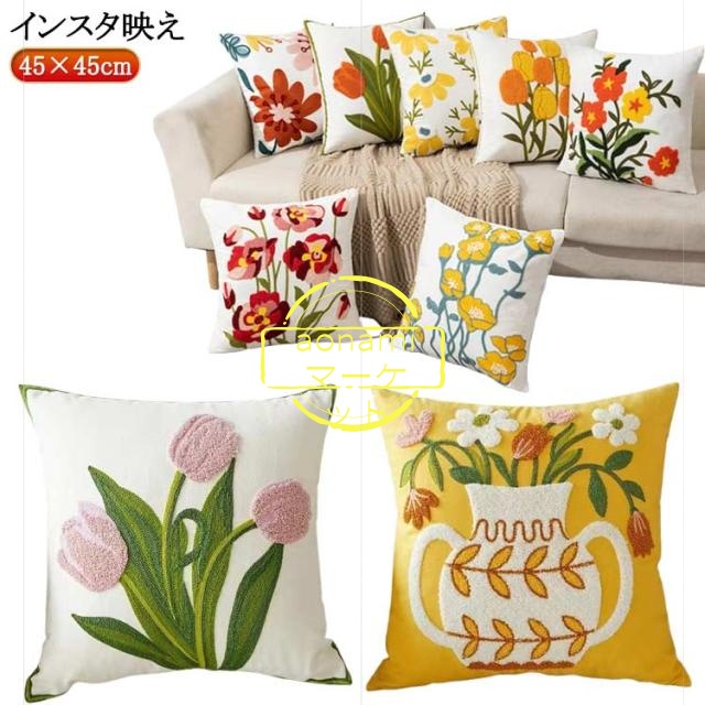 四角 韓国 クッション 花柄 花柄 正方形 総柄 フラワー おしゃれ 雑貨 グッズ インテリア 45×45 北欧 もこもこ 洗える ふわふわ ふわふわ 大きい インスタグラム 北欧 クッションカバー 可愛い 大きめ デザイン カバー 韓国