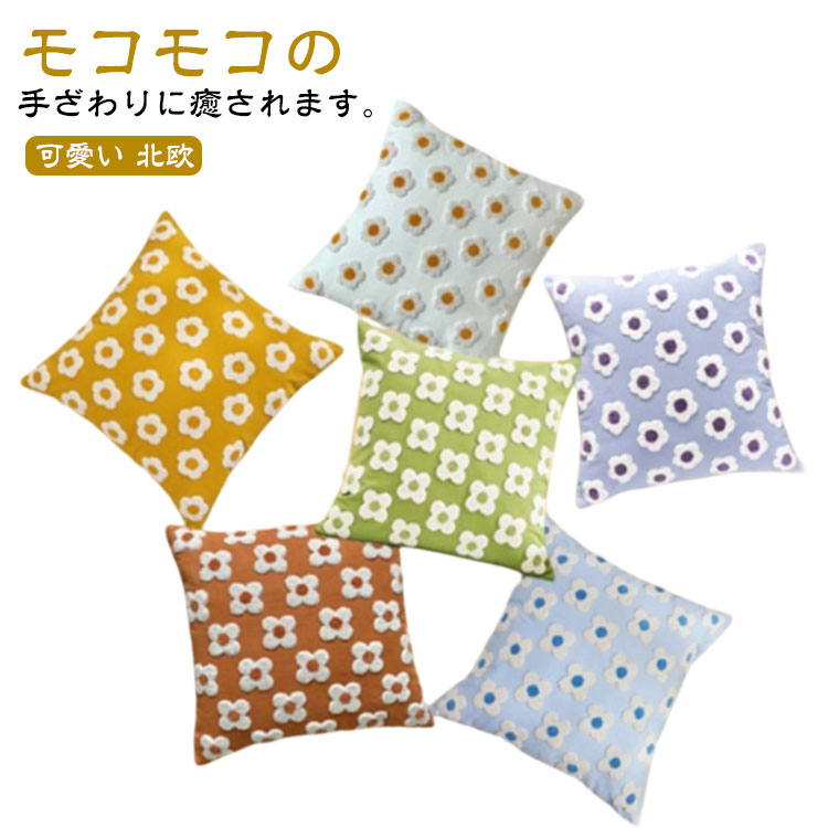 ■韓国 カバー 45cm×45cm パープル ブルー インテリア オレンジ 青 クッションカバー 花柄 もこもこ クッション 紫 大きめ おしゃれ 可愛