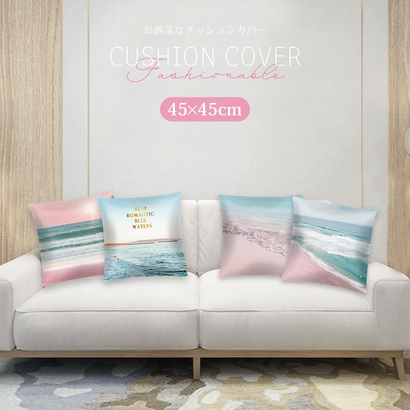 ■クッションカバー 45×45cm おしゃれ かわいい 姫部屋 北欧 プリント クッション フラワー 海 オーシャン ピンク 韓国 インテリア アメリ