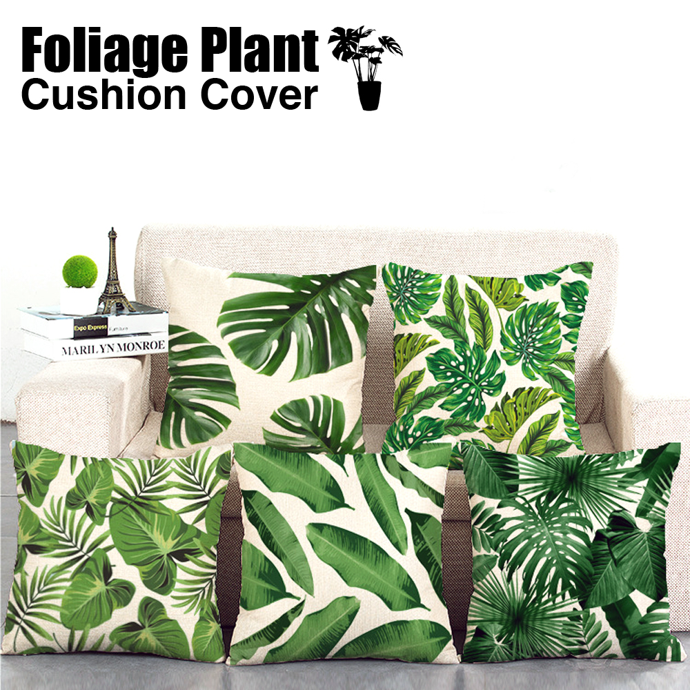 ■メール便 送料無料 観葉植物柄 クッション 45×45cm 全5種 モンステラ 南国風 インテリア 雑貨 生活 ソファ ベッド カバー