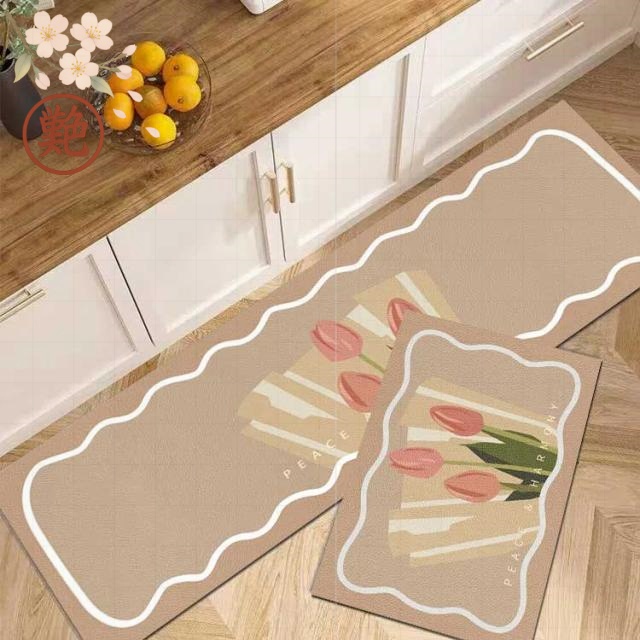 ■防汚 キッチン用品 油水対策 クッション 花柄 かわいい インテリア 2枚セット 贈物 ギフト 台所 母の日 キッチンマット へたらない ラグ