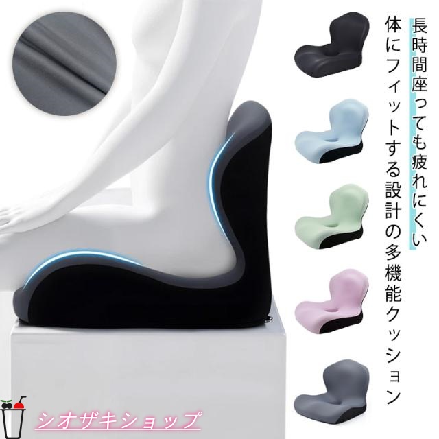 ■痛くない 男女兼用 オフィス 腰当て 背もたれ一体型 お尻フィット 椅子クッション 座布団 車用 低反発 滑り止め付き 蒸れにくい 体圧分散