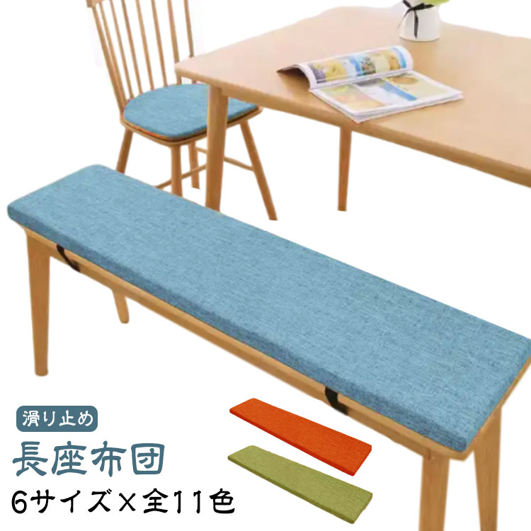 ■へたりにくい チェアパッド ロング 座布団 ベンチクッション 滑り止め 長座布団 ベンチ用座布団 お尻が痛くならない リネン カバー取り外