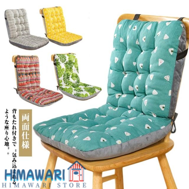 ■両面仕様 ふかふか 背もたれ付き 椅子用 チェアパッド 座布団 腰痛対策 シートクッション クッション 綿麻調 夏用 ベルベット 冬用 背も