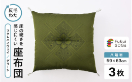 ■【ふるさと納税】床の硬さを感じにくい「反毛わた」 座布団(八端判59cm×63cm)3枚組【フクレハイウェイ】【グリーン】 [A-20424_01]