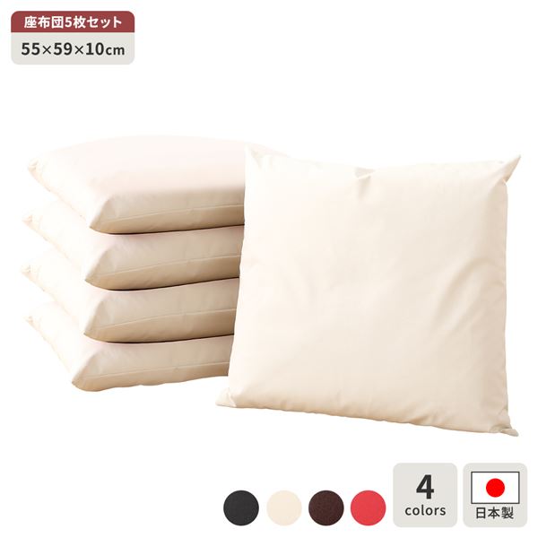 ■座布団 アイボリー 5枚セット 日本製 スクエア クッション ボリューム シート 55×59 cm PVC 合皮 レザー シンプル モダン デザイン 【北