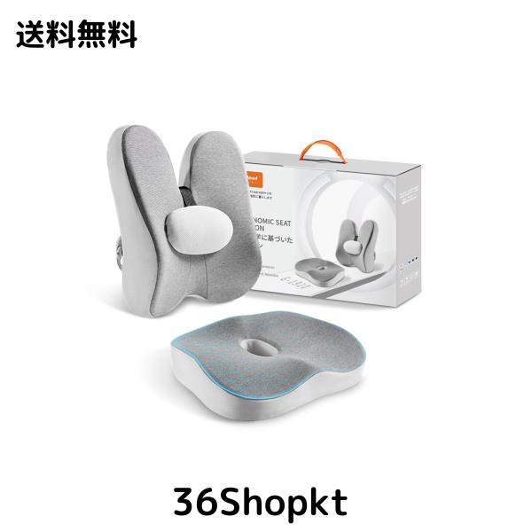 ■Gadeel 低反発 座布団&腰クッション 2点セット ポリウレタンフォーム 人間工学 ランバーサポート オフィスチェアクッションのコンボ 腰