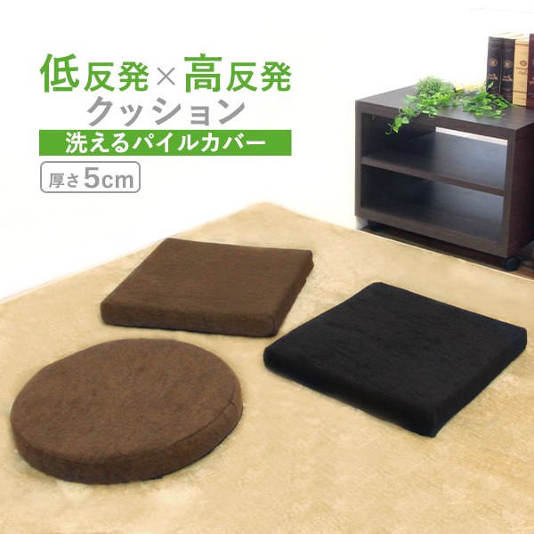 ■座布団 低反発 高反発 2層構造 低反発クッション 40×40 厚さ5cm 40cm フロアクッション おしゃれ スクエア ラウンド 北欧 モダン 四角