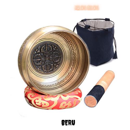 ◆商品名:NGEシンギングボウル セット 口径11cm スティック/座布団/巾着袋付き 十字金剛杵彫柄 倍音 仏教 ヒーリング リラックス ヨガ 瞑想 チャク
