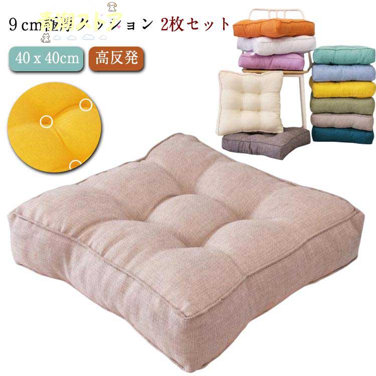 【2枚セット】 クッション 厚さ9cm 極厚 座布団 低反発 正方形 四角 フロアクッション 座椅子 リビング ダイニング 椅子 クッション シート