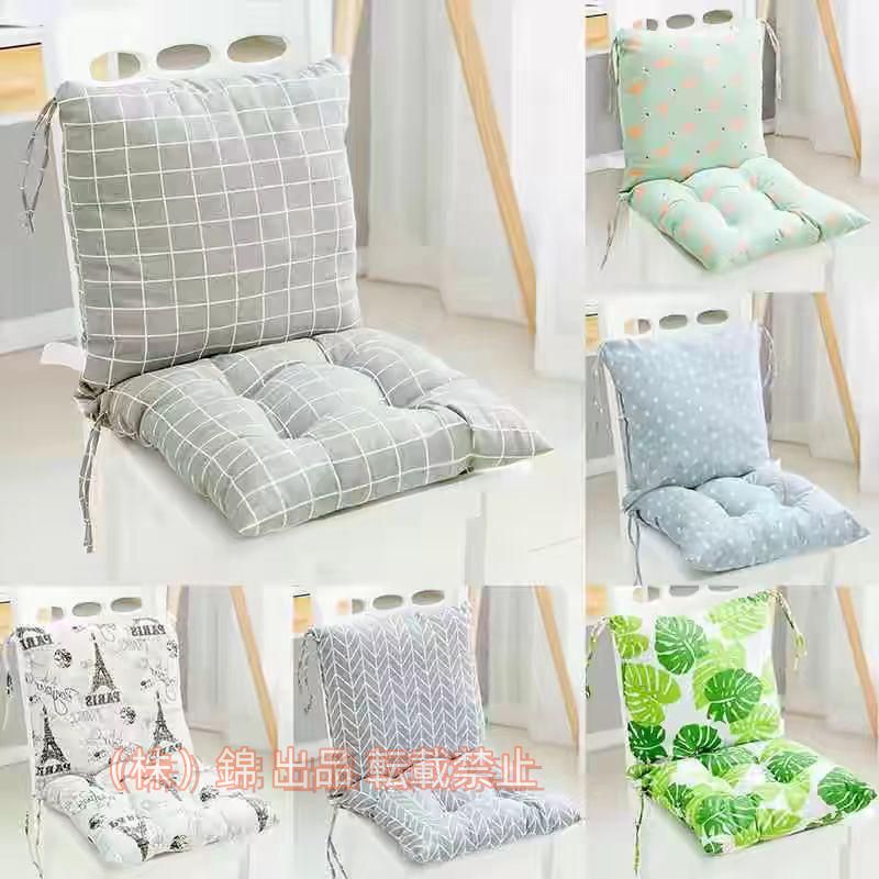 ■シートクッション 背もたれ付き ひも付き 椅子用 いす用 座布団 チェアパッド 厚め 株式会社錦 厚手 デスクワーク オフィス プリント 柄