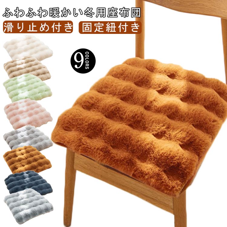 ■あったか 椅子用 クッション オフィス 厚手 冬用 固定紐付き 滑り止め付き 座布団 暖かい 防寒 リビング ふわふわ もこもこ 洗える 学生
