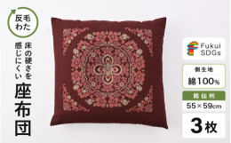■【ふるさと納税】床の硬さを感じにくい「反毛わた」座布団 側地綿100%(銘仙判55cm×59cm)3枚組【丸紋】【エンジ】 [A-20406_10]