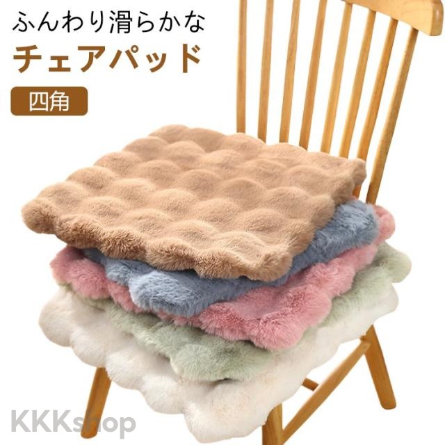 低反発 チェアマット チェアパッド 座布団 45×45cm スクエア 30×30cm ふわふわ モダン シンプル 四角 滑り止め チェアパッド 40×40cm もこもこ ポコポコ 北欧 ナチュラル 50×50cm 短毛 姫系 かわいい ひも付 フェイクファー 玄関 カーシート 車