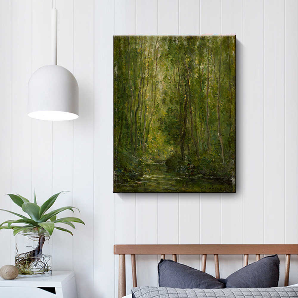 ■ファブリックパネル 絵画 インテリア 絵 アートフレーム ウッドランドシーン シャルル=フランソワ・ドービニー プリキャンバス複製画 人