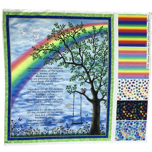 ■アメリカ生地パッチワーク 手作り布 タペストリー ファブリックパネル カーテン生地 キリスト詩 絵 虹 木 綿素材