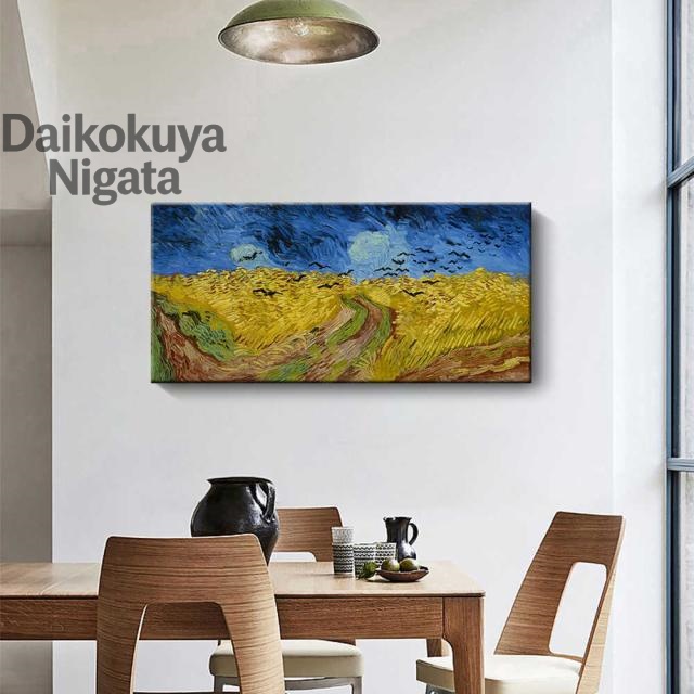 ■ファブリックパネル 絵画 インテリア 絵 アートフレーム カラスのいる麦畑 ゴッホ プリキャンバス複製画 人気 35×70cm 壁掛け おしゃれ