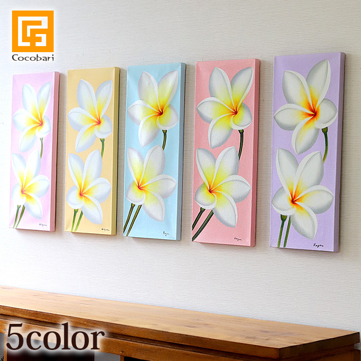■絵画 プルメリア(パステルカラー)(50cm×20cm) バリ雑貨 ハワイアン インテリア 玄関 おしゃれ 花 壁掛け 飾り アート フレーム パネル