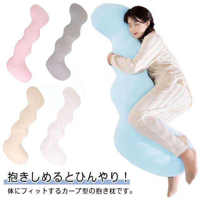 ■アイスシルク 横向き 抱き枕 涼感 ひんやり 妊婦 流曲線形 接触冷感 ロング だきまくら 長さ100cm カバー洗える ウォッシャブル 授乳クッ