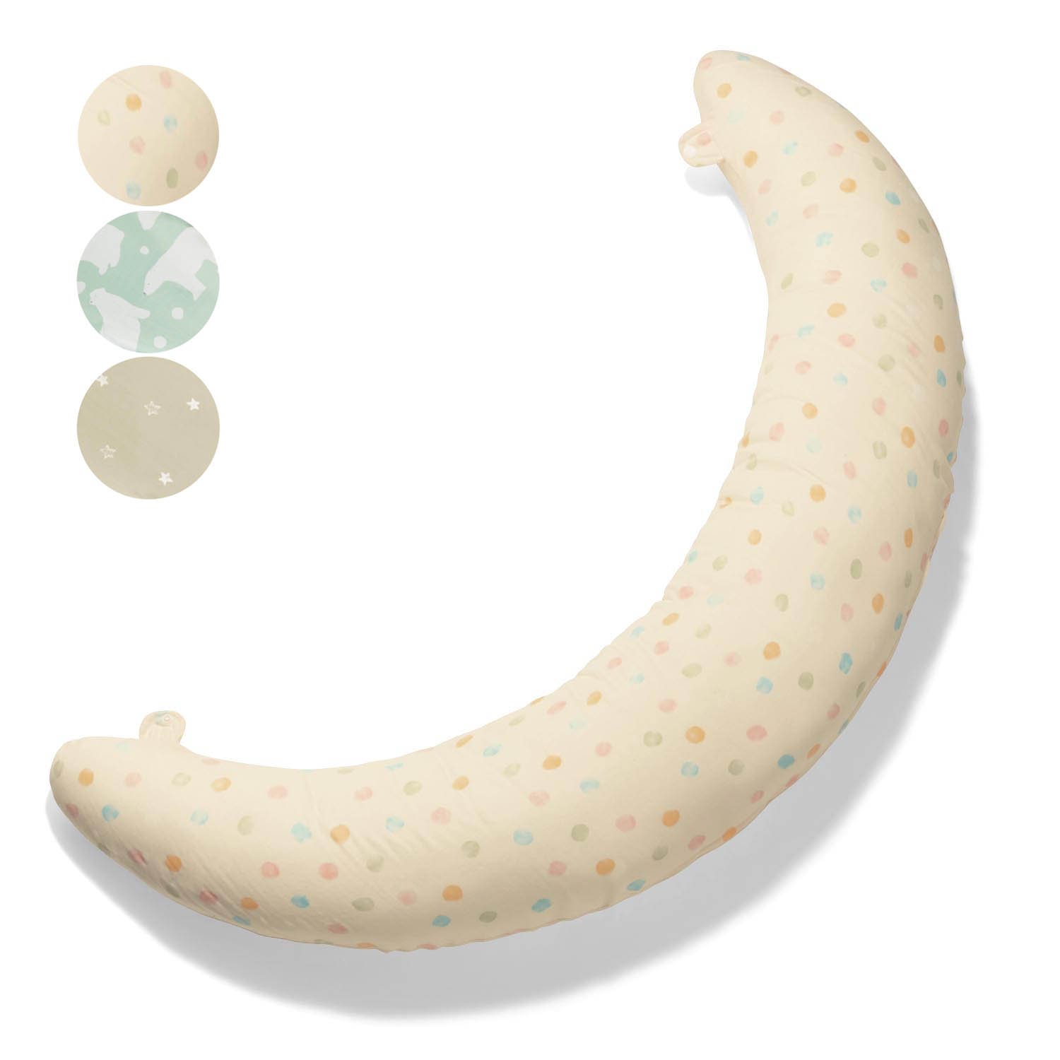 体を優しく預けられ、お腹が大きくなり上を向いて寝るのが辛くなってきたときに姿勢をサポートする定番人気の抱き枕。厚みもしっかりあり、抱きついたときのフィット感が心地よくリラックスした姿勢をとりやすいのが魅力。洗濯機で丸洗いできるのでいつでも清潔さをキープでき、形状もしっかりキープ。授乳クッション、ベビーのお座りサポートなどと様々な使い方ができ重宝します。カバーは肌あたりのいい綿100%中わたは付け足しができるのでへたりが出てもクッション性をキープ