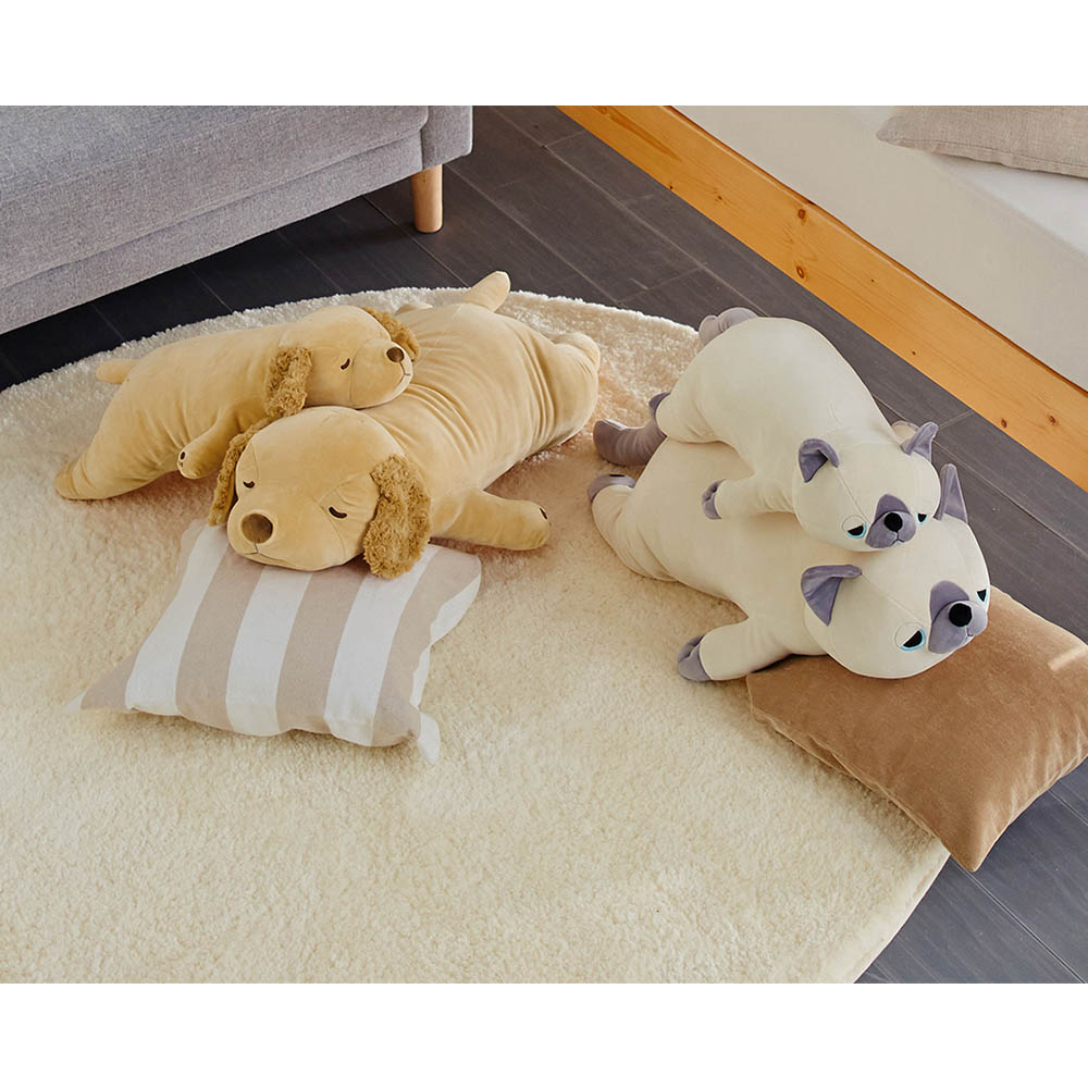 モチッとした弾力感と、なめらかな肌ざわりまるで大きなマシュマロを抱っこしているような不思議な気持ちよさが味わえる、ねむねむシリーズの抱き枕です今回は新たに、「パグ」「ハスキー」「黒柴」が仲間入り耳やしっぽ、肉球などディテールにも凝ったデザインは、インテリア性も抜群ですそれぞれ、「M」と「L」の2サイズから、サイズ違いで揃えて親子使いするのもGOOD