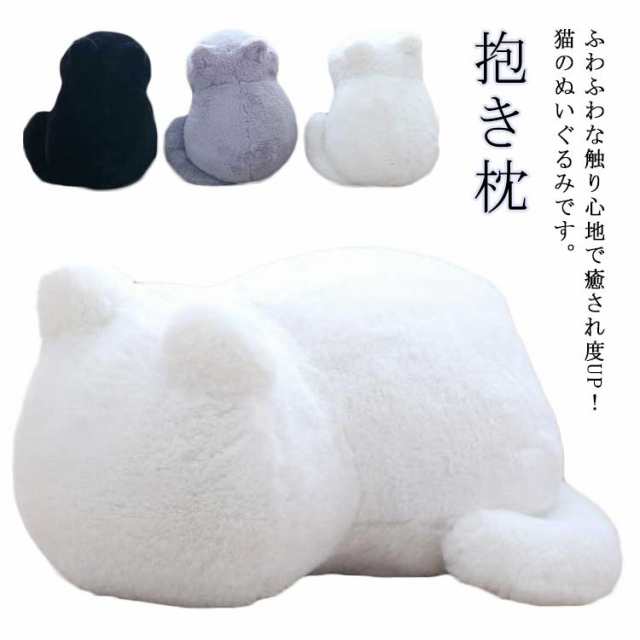 ぬいぐるみ 猫 ネコ 猫ぬいぐるみ 誕生日 ギフト 黒猫 お昼寝 抱き枕 プレゼント 娘 子ども 母 ブラック ホワイト グレー お祝い 贈り物 ふわふわ 敬老の日
