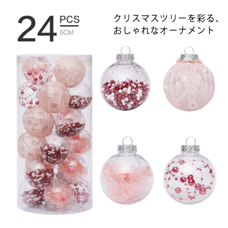 ■クリスマスツリー オーナメント 飾り セットクリスマス 北欧 おしゃれ 6cm/24pcs PET 透明 クリア ピンク ゴールド インスタ映え INS SNS